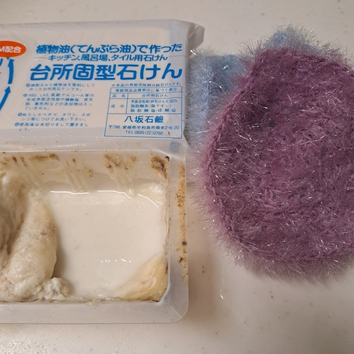 店主は石鹸と合わせてリタを使ってます。リタのプレゼントコメントで30g付けしております。キラキラタワシとの相性も良いです!