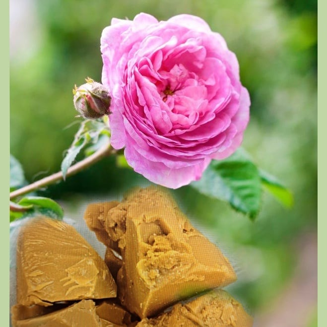 ローズセンチフォリアの花から精油を抽出した後に残るワックスです。